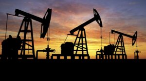 Oil pumps at sunset